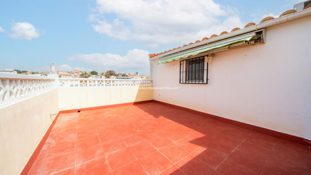 In der Urbanisation "La Marina" gelegen, bietet unsere "Casa del Sol" alles was Sie für einen entspannten Urlaub brauchen. Die Wohnfläche von ca. 60qm ist aufgeteilt in Wohnzimmer mit Küche, 2 Schlafzimmer in oberen Etage, 1 Schlafzimmer zzgl. 2 Gästebetten im Wohnbereich (Untere Etage) und jeweils 1 Bad/WC und bietet somit Platz für 4 Personen (obere Etage) und 2 Personen (Untere Etage). Zur Ausstattung gehören außerdem WLAN (für Videoanrufe geeignet), eine Klimaanlage mit Heizfunktion, jeweils ein Ventilator, eine Waschmaschine sowie ein TV. Ein Hochstuhl und ein Babybett sind gegen eine zusätzliche Gebühr erhältlich.